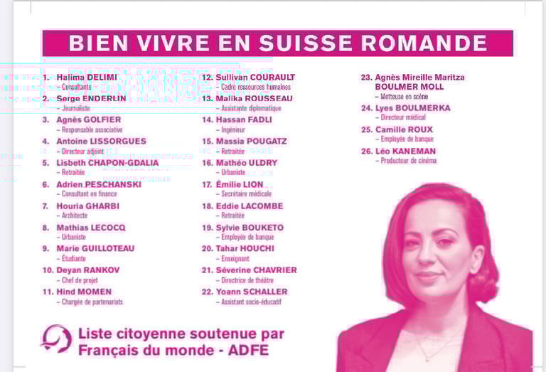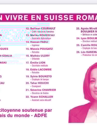 Vice-présidente de la Fondetec à Genève, j’agis concrètement pour l’emploi et l’entrepreneuriat. Présidente de Français du Monde – Suisse (ADFE), je défends une représentation utile, indépendante et proche des citoyens.